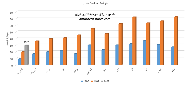 مجموع درآمد نماد خزر طی عملکرد 10 ماهه نسبت به مدت مشابه سال قبل 97% رشد داشته است.