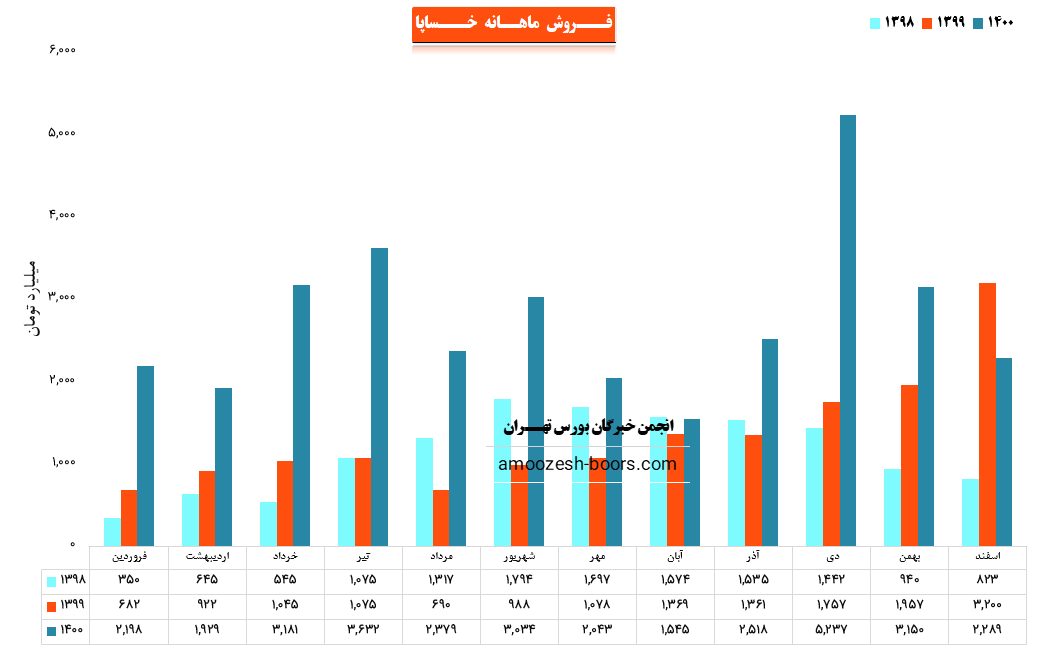 شرکت در سومین ماه سال مالی توانسته است فروش 5.360 میلیارد تومانی را ثبت نماید درآمد شرکت در این دوره نسبت به ماه قبل 37.51% افزایش و نسبت به میانگین ماه های قبل 70.19% افزایش داشته است. شرکت نسبت به دوره 1 ماهه مشابه سال قبل 68.52% افزایش درآمد داشته است.