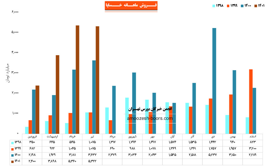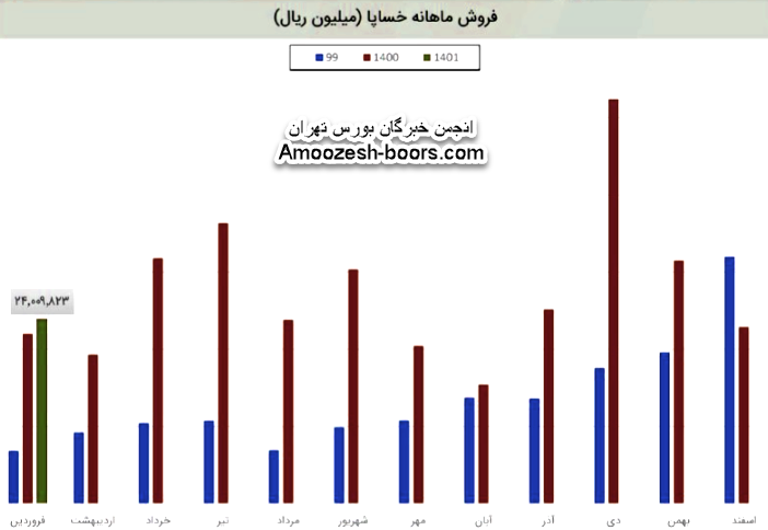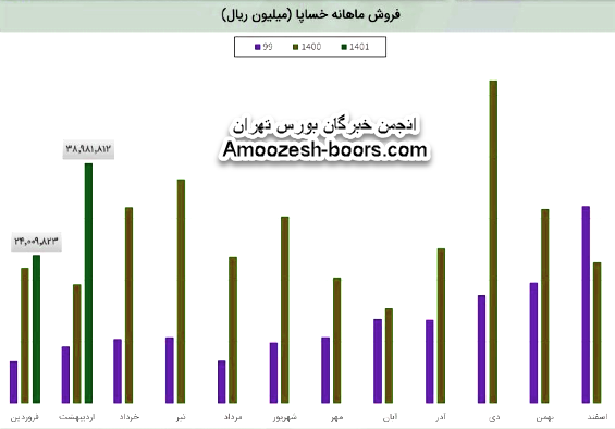 نماد خساپا (شرکت خودروسازی سایپا) در تیر ماه ۱۴۰1 حدود مبلغ 5322 میلیارد تومان درآمد داشته که این میزان در مقایسه با ماه گذشته 1% کاهش و همچنین در مقایسه با مدت مشابه سال گذشته 47% رشد درآمد پیدا کرده است.