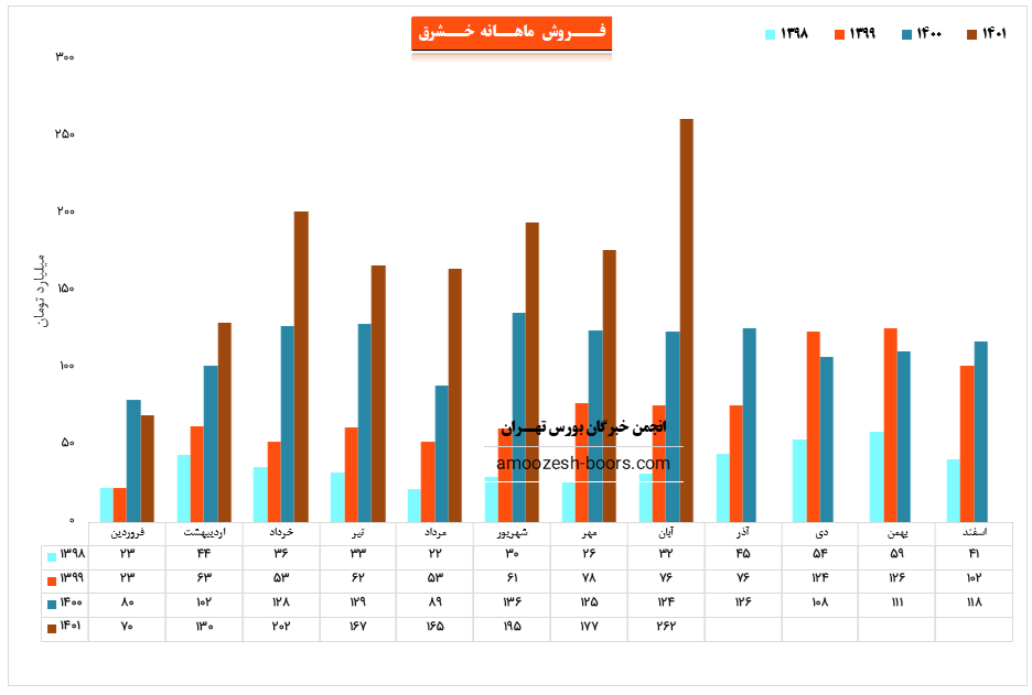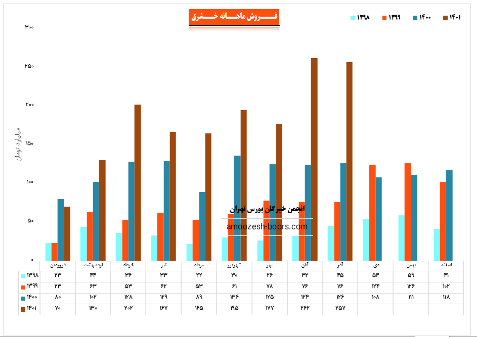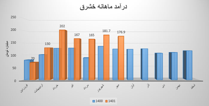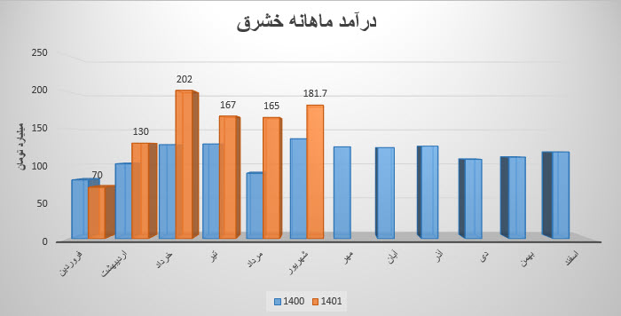 نماد خشرق نسبت به دوره 1 ماهه مشابه سال قبل 33% افزایش درآمد داشته است.