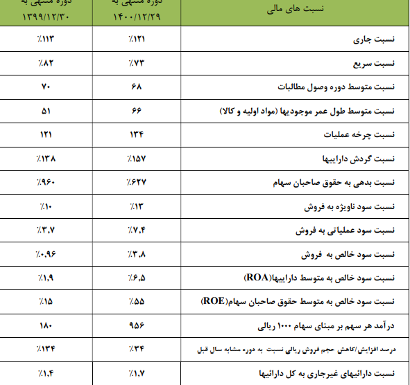سود خالــص: 370 میلیون تومان که نسبت به دوره مشابه گذشتــه 86% کـاهش یافته است.
