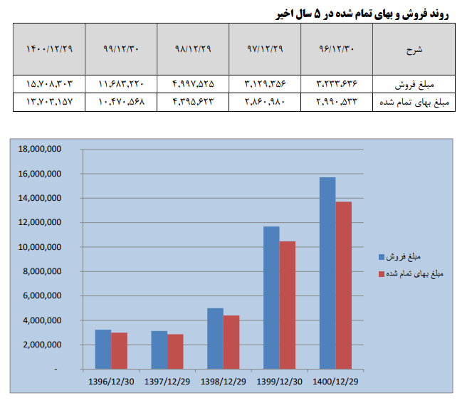 فروش شرکت: 402 میلیارد تومان که نسبت به دوره مشابه گذشته 22% افزایش یافته است.