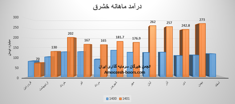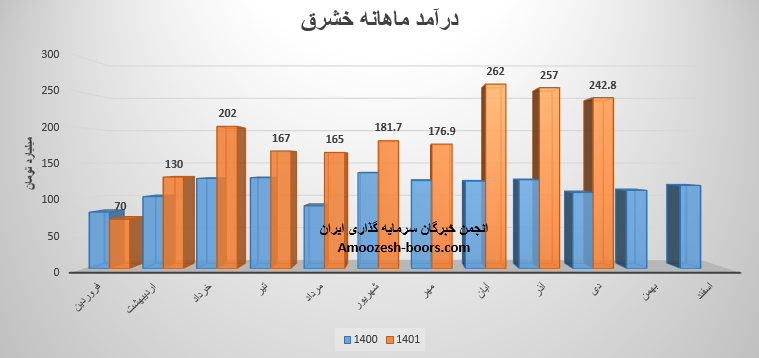 مجموع درامد نماد خشرق طی عملکرد 10 ماهه نسبت به مدت مشابه سال قبل 71% رشد داشته است.