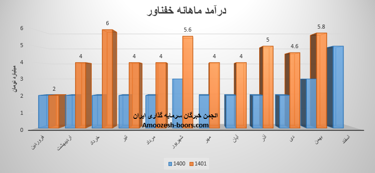 مجموع درآمد نماد خفناور طی عملکرد 10 ماههنسبت به مدت مشابه سال قبل 109% رشد داشته است.