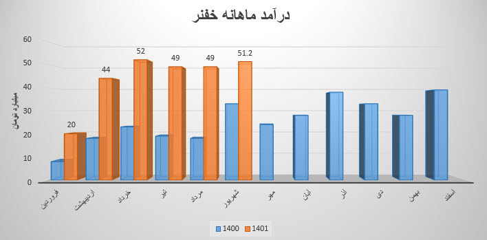 نماد خفنر (شرکت فنرسازی خاور) در آذر ماه ۱۴۰1 حدود مبلغ 17 میلیارد تومان درآمد داشته که این میزان در مقایسه با ماه گذشته 17% و همچنین در مقایسه با مدت مشابه سال گذشته 97% رشد درآمد پیدا کرده است.