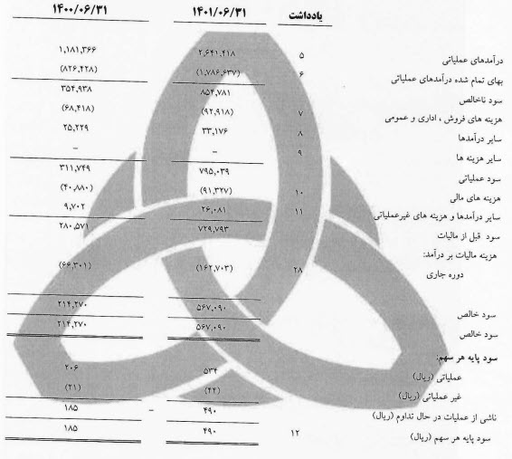 ای پی اس محقق شده در صورت مالی میان دوره ای 6 ماهه نماد خفنر (شرکت فنرسازی خاور) با رشد 165 درصدی به 490 ریال رسیده است . همچنین درآمد عملیاتی 124 درصد رشد ، بهای تمام شده 116 درصد افت ، سود ناخالص 141 درصد رشد ، سود عملیات ی155 درصد رشد ، هزینه های مالی 123 درصد و سود عملیات ی159 درصد رشد داشته است . سایر تغییرات با اهمیت به شرح زیر میباشد :