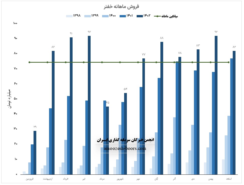 نماد خفنر در اسفند ماه حدود بیش از 858 تن از محصولات خود را به فروش رسانده که این میزان در مقایسه با حجم فروش ماه گذشته خود حدود 20% افت پیدا کرده است.