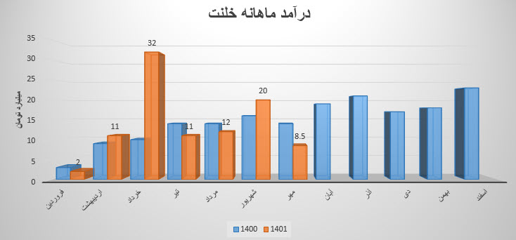 مجموع درآمد نماد خلنت طی عملکرد 10 ماهه نسبت به مدت مشابه سال قبل 30% رشد داشته است.