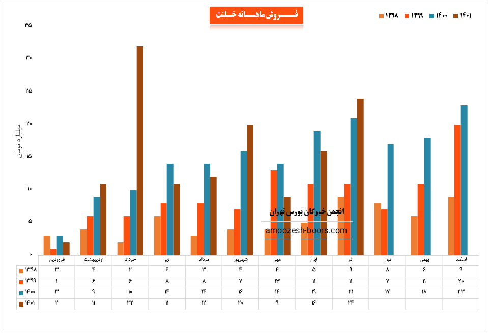 مقدار فروش محصولات نماد خلنت رشد 69 درصد، میزان تولید 4 درصد و نرخ فروش رشد 18 درصدی نسبت به متوسط ماهانه را تجربه نموده اند .