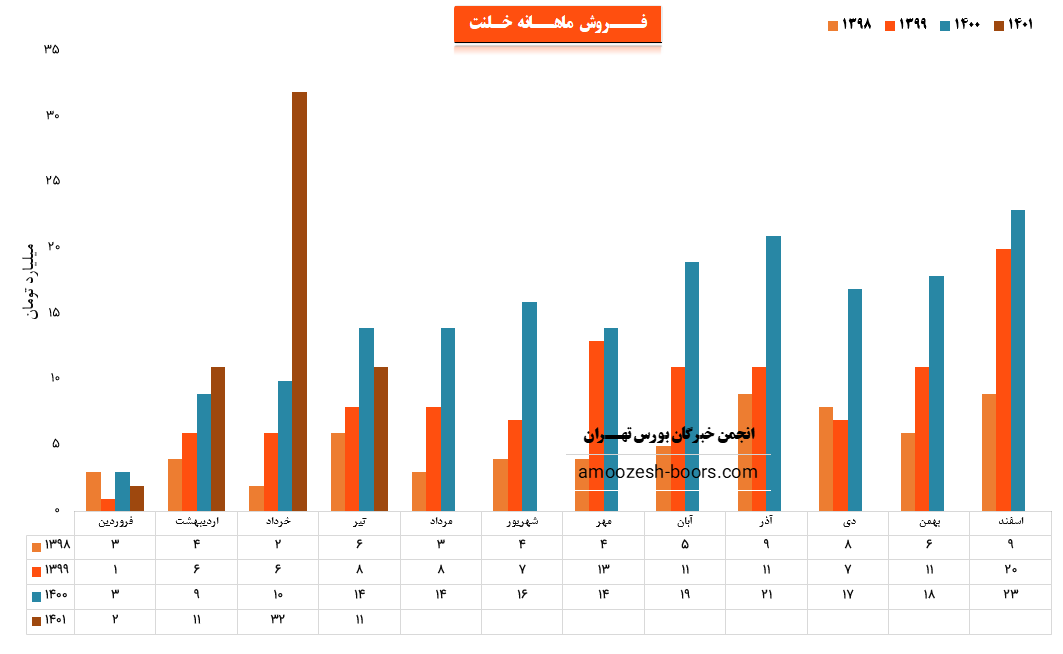 نماد خلنت نسبت به دوره 1 ماهه مشابه سال قبل 23% افزایش درآمد داشته است.