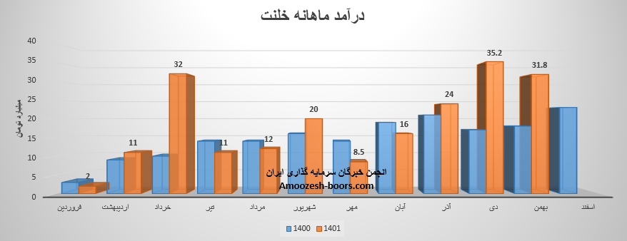 درآمد نماد خلنت در عملکرد یازدهمین ماه از سال مالی معادل 31.8 میلیارد تومان گزارش شد، هرچند این رقم کاهش 10 درصدی را نسبت به ماه قبل نشان میدهد اما نسبت به متوسط ماهانه 85% و نسبت به مدت مشابه 77% افزایش داشته است، عمده فروش سهم خلنت در بهمن ماه بر لنت ترمز استوار بوده که سهم 96 درصدی از فروش این ماه را به خود اختصاص داده.