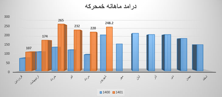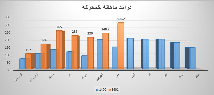 نماد خمحرکه نسبت به دوره 1 ماهه مشابه سال قبل 21.44% افزایش درآمد داشته است.