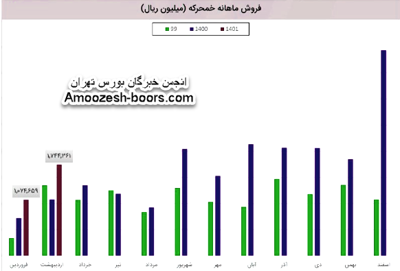 لازم به ذکر است که نماد خمحرکه در انتهای سه ماهه ابتدایی سال با ثبت فروش ۵۵۵ میلیارد تومانی توانست حدود ۱۷ % از پیش بینی فروش سالانه خود را محقق سازند.