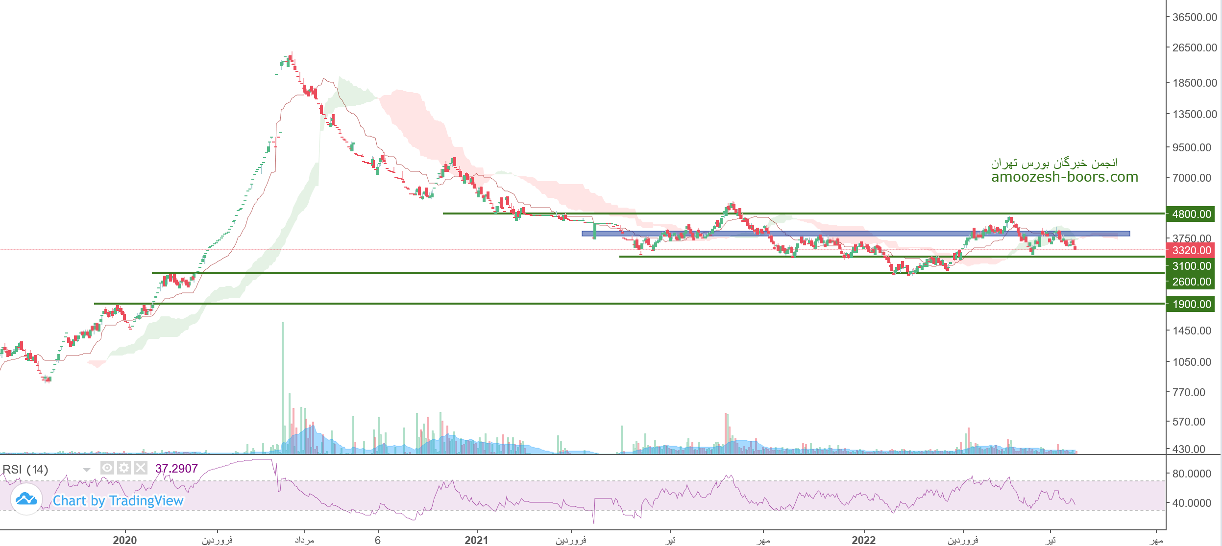 خمحرکه در حال حاضر حمایت 3100 ریال را دارا میباشد، در صورت تثبیت قیمت حرکت سهم تا 4000 ریال دور از ذهن نخواهد بود، همچنین در صورت از دست رفتن این حمایت، حمایت بعدی 2600 ریال در نظر گرفته خواهد شد که در این صورت حد ضرر فعال میگردد.