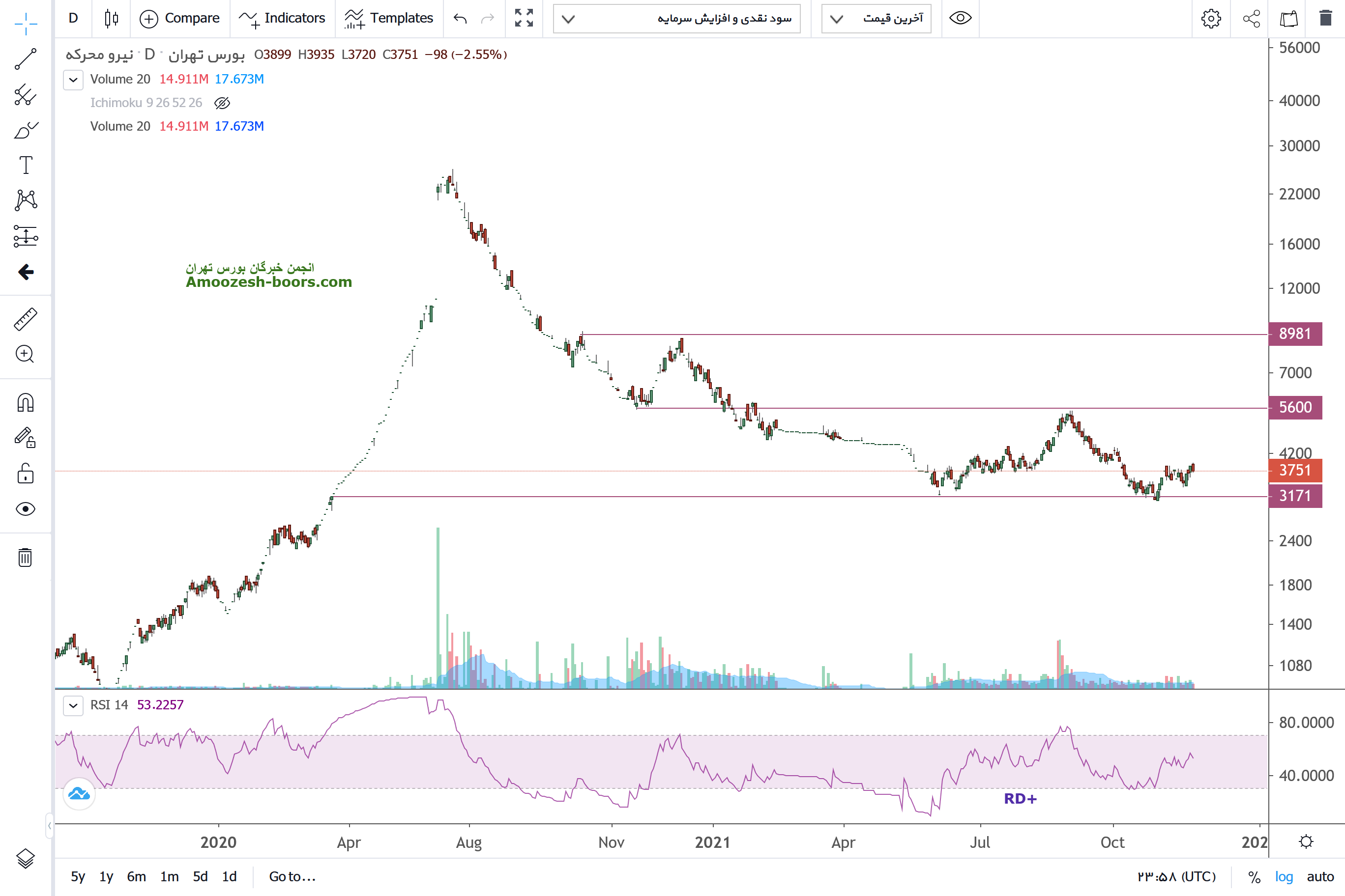 قیمت در حال حاضر در موقعیت کم ریسک حمایت استاتیک واقع شده وواگرایی مثبتی ایجاد نموده است در ص.رت تثبیت مقاومت های 4000 و 5500 بر سر راه سهم قرار گرفته و در صورت از بین رفتن این حمایت حد ضرر فعال خواهد شد .