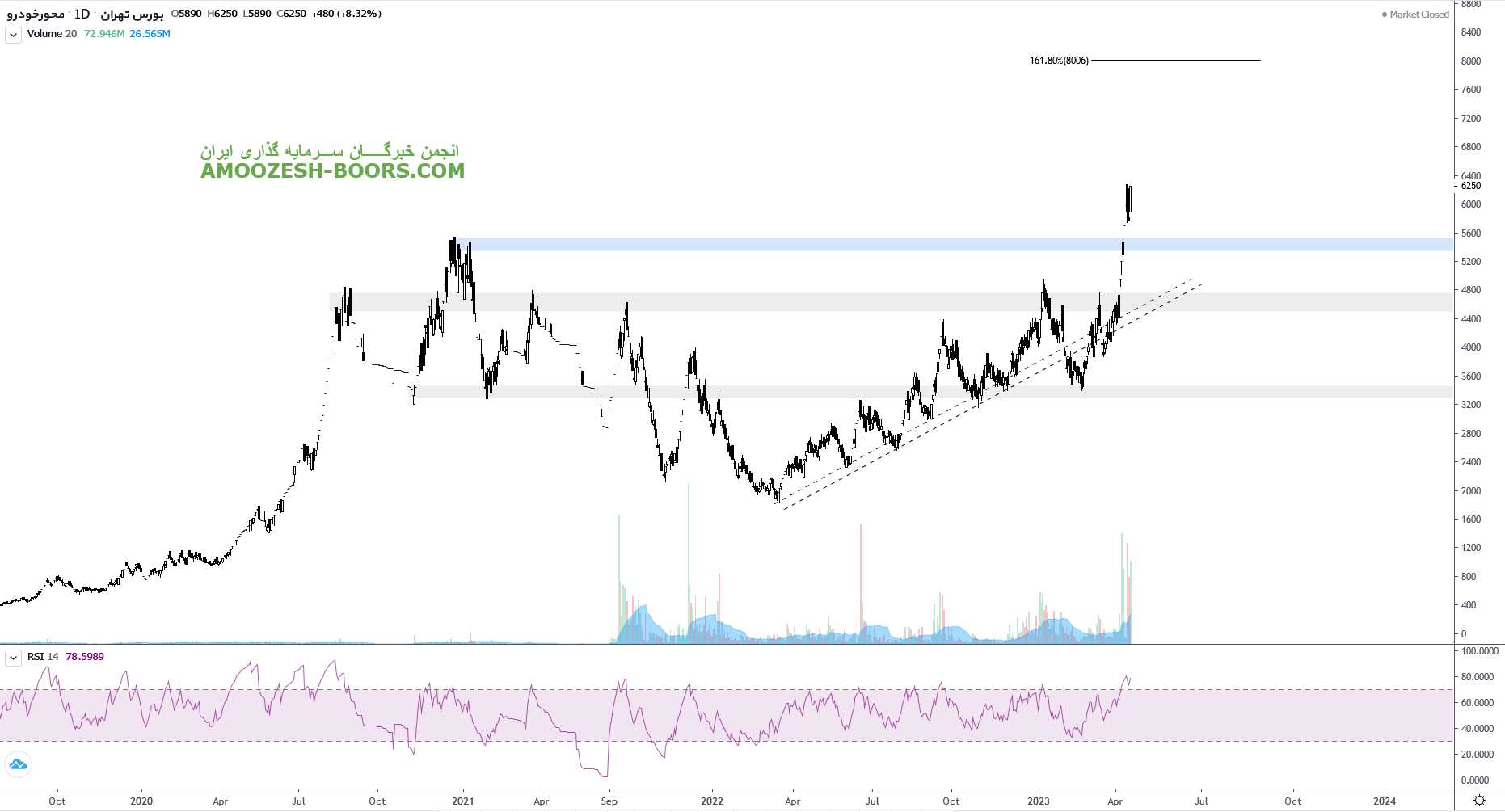 در بررسی نمودار تکنیکال خمحور، قیمت سهم به 4800 ریال واکنش مثبت نشان داده، در صورت تثبیت و بیس سازی قیمت در این محدوده، تارگت سهم 8500 ریال ارزیابی خواهد شد، قیمت نماد خمحور در این محدوده به شرط رعایت حد ضرر کم ریسک میباشد، همچنین در صورت از دست رفتن محدوده حمایتی ذکر شده، حمایت بعدی سهم خمحور 3200 ریال در نظر گرفته خواهد شد.