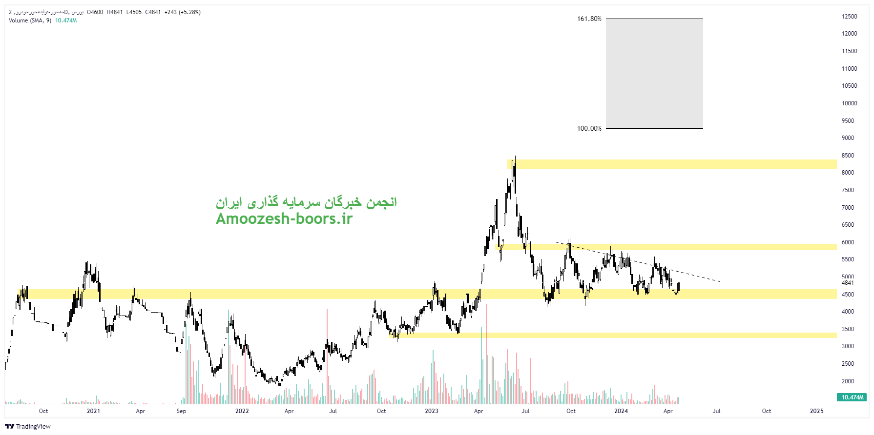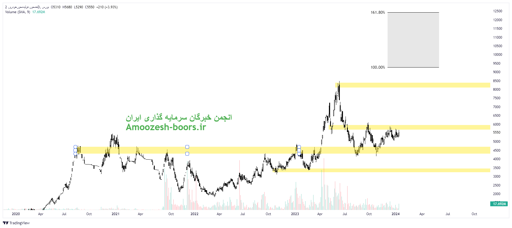 همچنین در صورت بروز واکنش منفی به مقاومت ناحیه ۵۸۰ تومان مهمترین حمایت سهم خمحور ناحیه ۴۶۰ تومان در نظر گرفته خواهد شد.