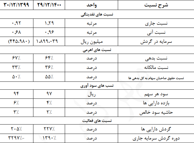 نسبت های مهم مالی شرکت در حال بهبود بوده اما هنوز در مسیر تثبیت فاکتورهای بنیادی قرار نگرفته است :
