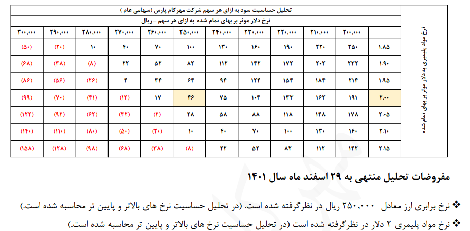 برآورد شرکت از سود 1401 به شرح زیر میباشد :