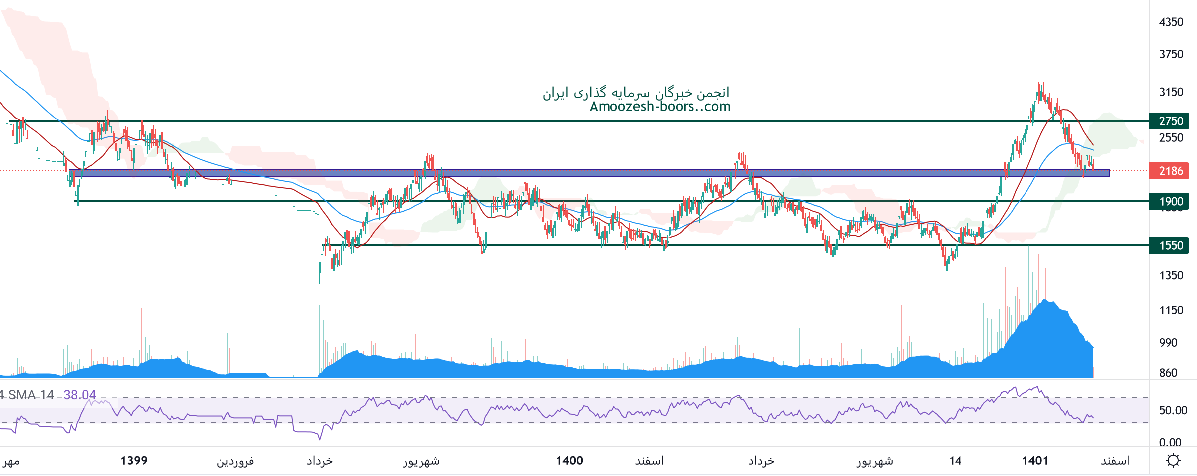نماد خمهر بعد از حدود 30 درصد اصلاح به محدوده حمایتی 2100 ریال واکنش مثبت نشان داده است، در صورت تثبیت قیمت در این محدوده، حرکت سهم خمهر تا 2750 ریال دور از ذهن نمیباشد، همچنین در صورت از دست رفتن این محدوده حمایتی، حمایت بعدی 1900 ریال ارزیابی میگردد.