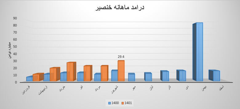 نماد خنصیر (شرکت مهندسی نصیر ماشین) در آبان ماه ۱۴۰1 حدود مبلغ 36 میلیارد تومان درآمد داشته که این میزان در مقایسه با ماه گذشته 38 درصد و همچنین در مقایسه با مدت مشابه سال گذشته 227 درصد رشد درآمد پیدا کرده است.