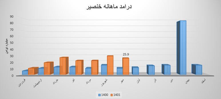 نماد خنصیر (شرکت مهندسی نصیر ماشین) در آذر ماه ۱۴۰1 حدود مبلغ 38 میلیارد تومان درآمد داشته که این میزان در مقایسه با ماه گذشته 6 درصد و همچنین در مقایسه با مدت مشابه سال گذشته 171 درصد رشد پیدا کرده است.