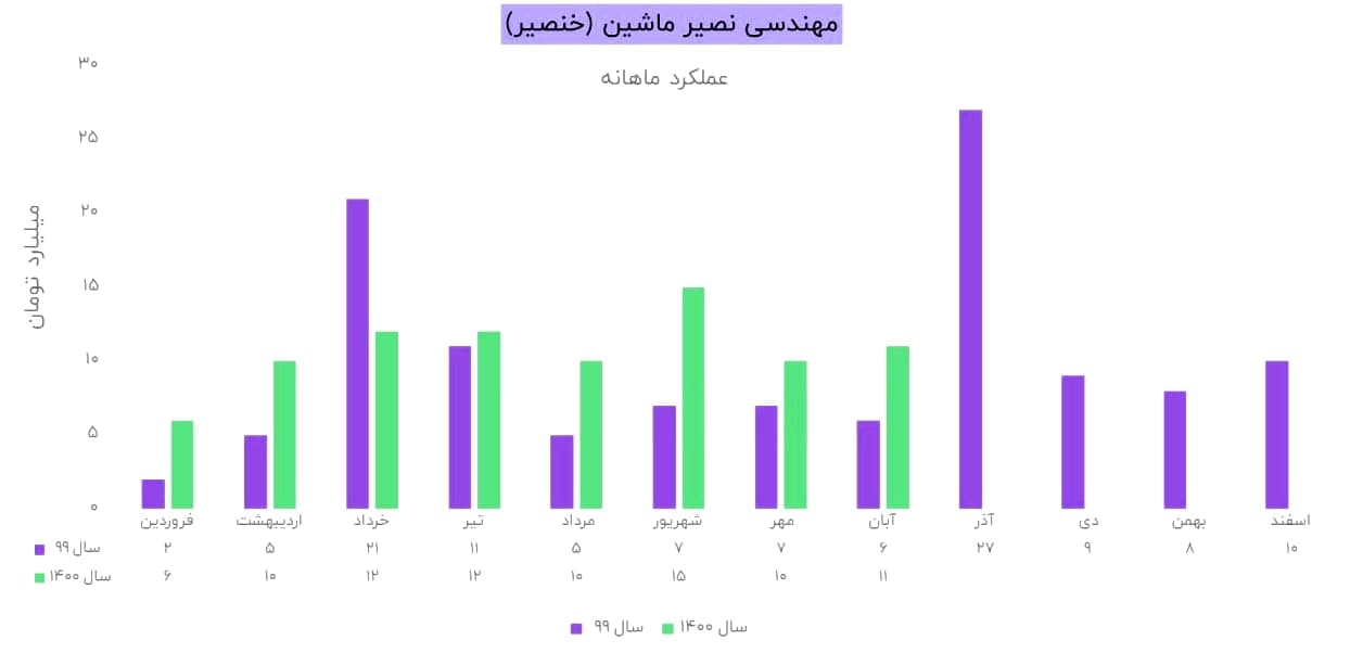 شرکت مهندسی نصیر ماشین طی عملکرد 1 ماهه منتهی به 1400/08/30 معادل 112,859 میلیون ریال از محصولات خود را به فروش رسانده که نسبت به دوره 1 ماهه مشابه سال قبل 98% افزایش داشته است.