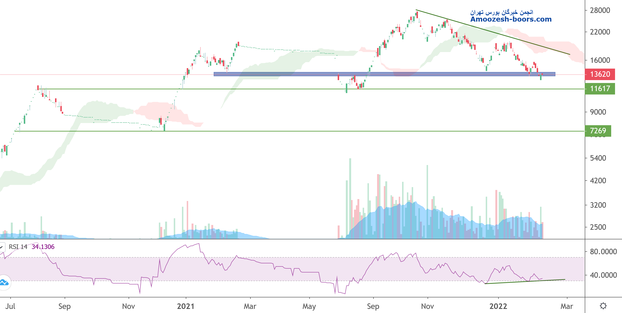 قیمت با ایجاد واگرائی مثبت در منطقه حمایتی قرار گرفته و در صورت تثبیت مقاومت 18000 ریال را سر راه خود دارد و در صورت ادامه فشار فروش حد ضرر فعال خواهد شد.