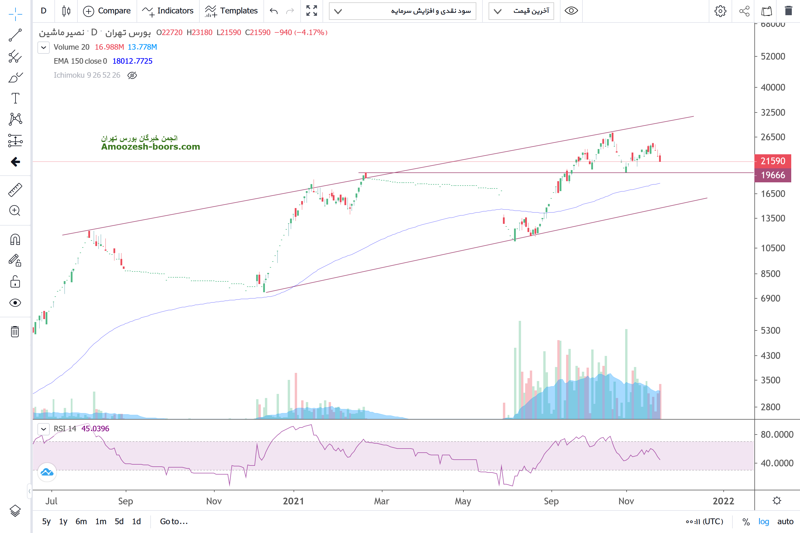 مسیر حرکتی سهم صعودی بوده و پس تست مقاومت سقف کانال وارد فاز اصلاحی شده هدف قیمتی برای سهم در سقف کانال صعودی ابتدا 27000 تومان با در نظر داشتن مقاومت 23000 میباشد سیو .سود پله ای برای سرمایه گذاران کوتاه مدتی در مقاومت های اعلامی پیشنهاد میگردد و رعایت حد ضرر 20000 برای معامله گران الزامیست.