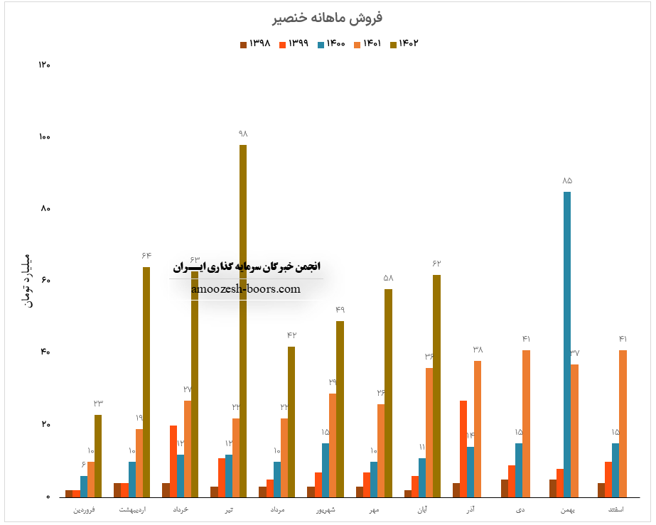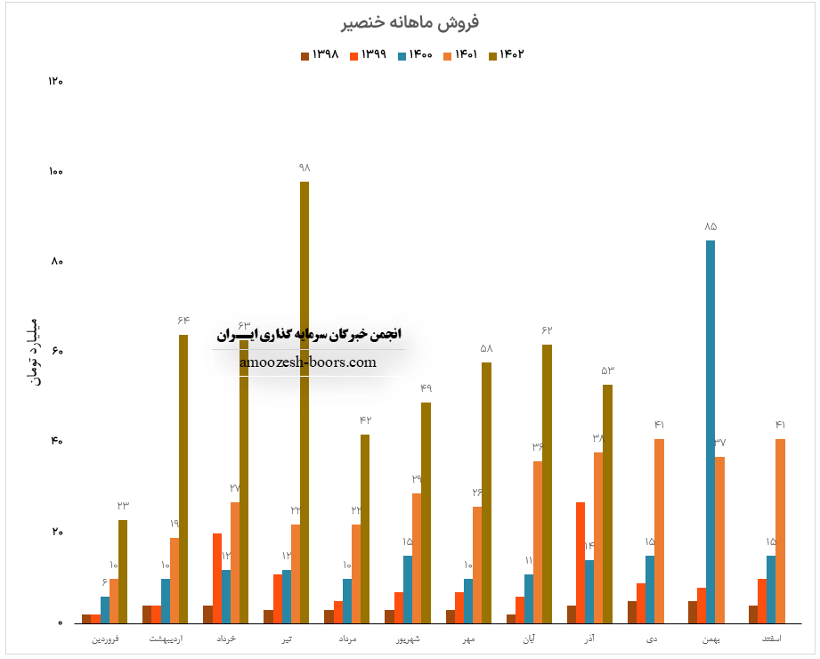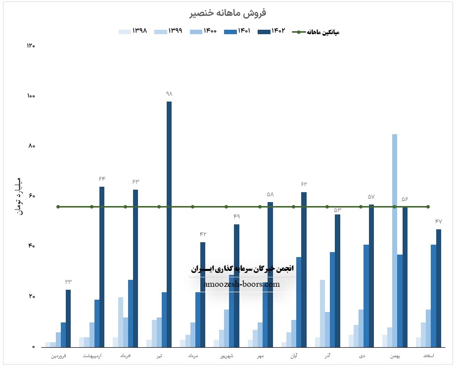 فروش ماهانه خنصیر در مقایسه با متوسط ماهانه 9% و نسبت به آبان ماه سال گذشته 71% رشد را نشان میدهد.
