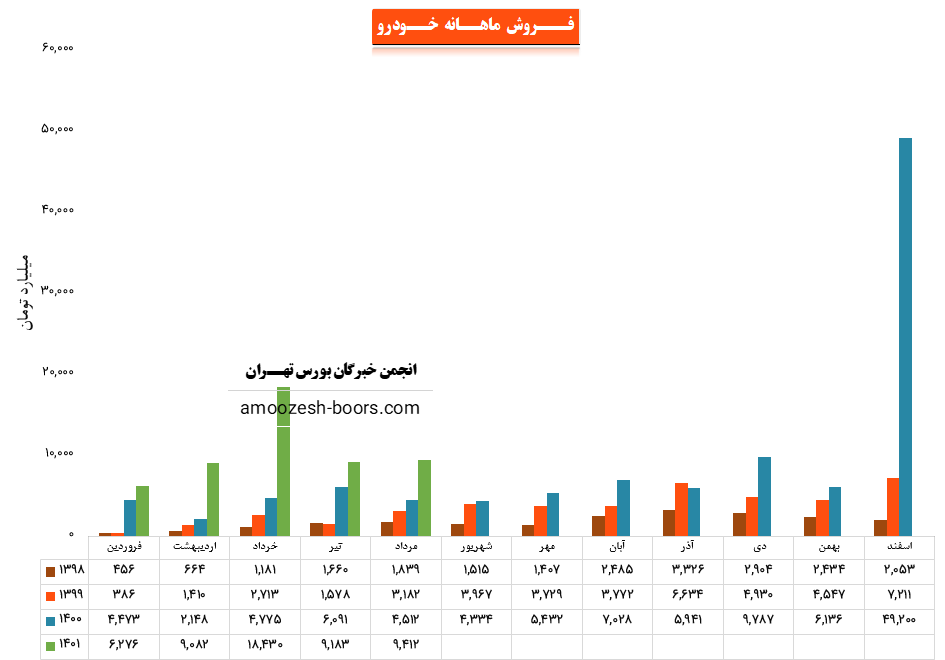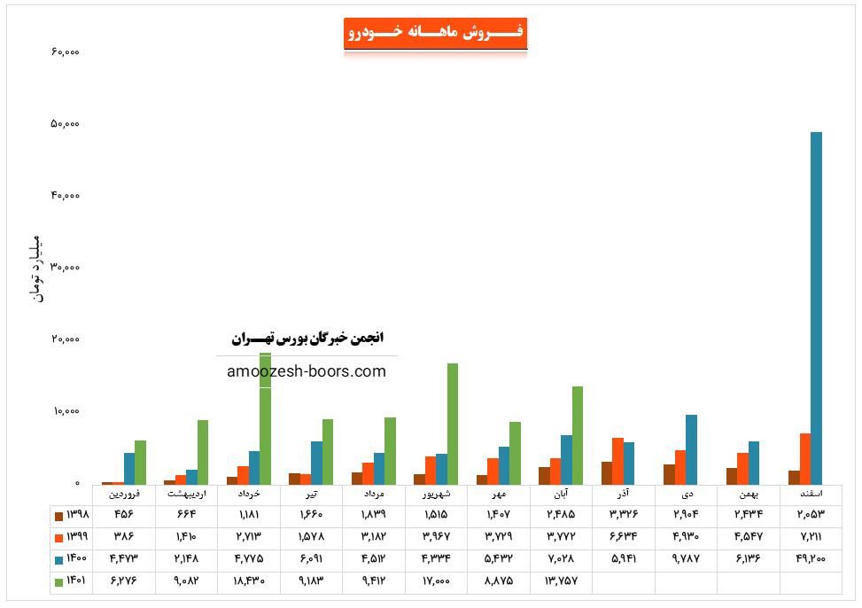 سهم خودرو نسبت به دوره 1 ماهه مشابه سال قبل 310% افزایش درآمد داشته است.