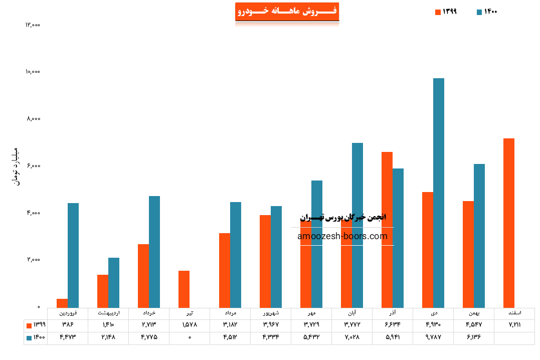 فروش شرکت ایران خودرو طی عملکرد 1 ماهه منتهی به 1400/10/30 نسبت به دوره 1 ماهه مشابه سال قبل 99% افزایش داشته و رشد 65 درصدی نسبت به آذر و رشد 97 درصدی نسبت به میانگین 9 ماه گذشته سال نشان می دهد.