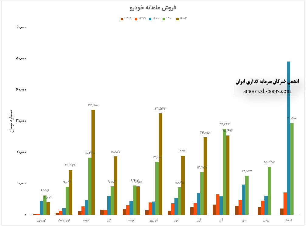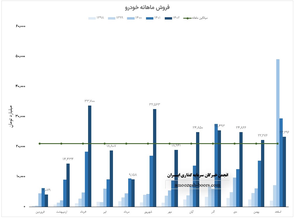 شرکت ایران خودرو ( خودرو ) در بهمن ماه 1402 فروش 22276.2 میلیارد تومانی را به دست آورده که کاهش 10 درصدی در مقایسه با ماه گذشته و همچنین رشد 7 درصدی نسبت به متوسط ماهانه داشته است،