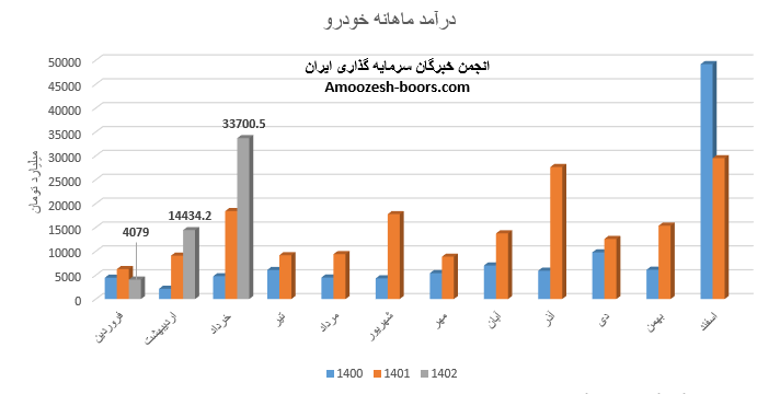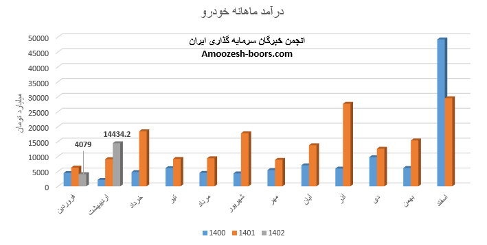 عملکرد ماهانه نماد خودرو کاهش چشمگیری داشته و به رقم 9158 میلیارد تومان رسیده است، درآمد ماهانه خودرو تغییرات زیر را تجربه نموده است: