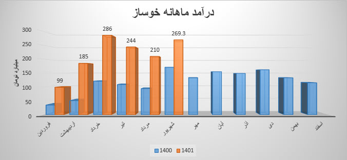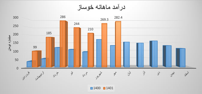 نماد خوساز نسبت به دوره 1 ماهه مشابه سال قبل 57% افزایش درآمد داشته است.
