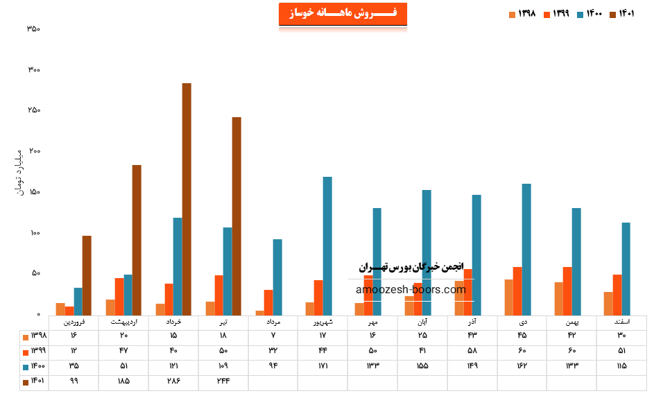 نماد خوساز با ثبت فروش 541 میلیارد تومانی در انتهای سه ماهه ابتدایی سال توانست حدود 25درصد از پیشبینی فروش سالانه خود را محقق سازد.