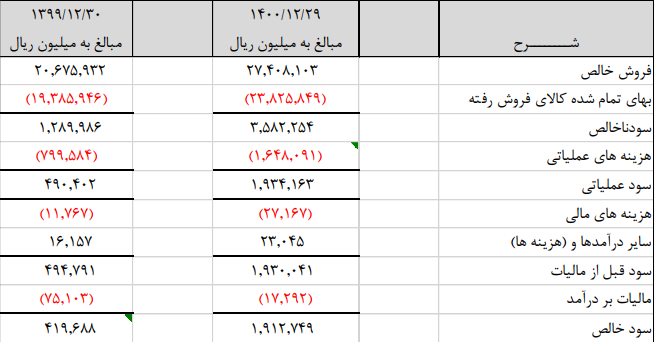 سود ناخالـص: 42 میلیارد تومان که نسبت به دوره مشابه گذشته  12% افزایش   یافته است.