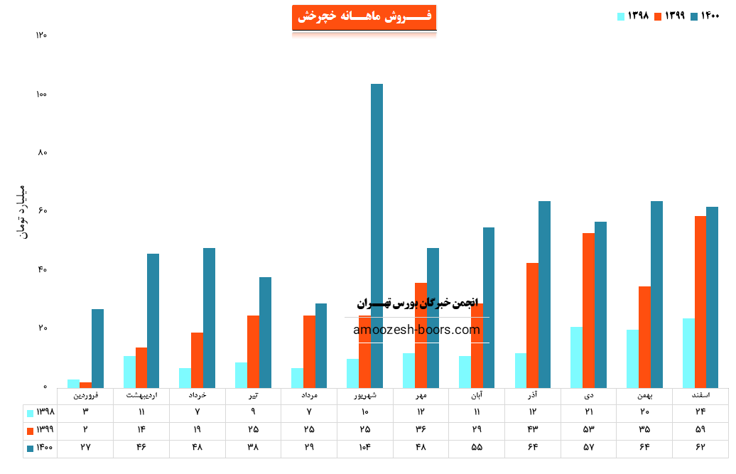 درآمد خچرخش در خردادماه 1088 میلیارد ریال بوده و در 3 ماهه سال مالی هم 2483 میلیارد ریال فروش داشت مدت مشابه قبل این عدد 1216 میلیارد ریال بود و تغییر 104 درصدی را داشته است . درآمد شرکت در این دوره نسبت به ماه قبل 14% کاهش و نسبت به میانگین ماه های قبل 56% افزایش داشته است. شرکت نسبت به دوره 1 ماهه مشابه سال قبل 126% افزایش درآمد داشته است.