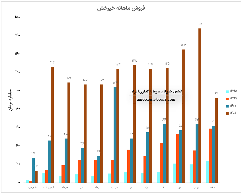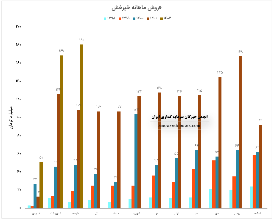 سهم خچرخش در اسفند ماه نیز حدود بیش از 4300 دستگاه از محصولات خود را به فروش رسانده که این میزان در مقایسه با حجم فروش ماه گذشته ۲۰ % کاهش پیدا کرده است