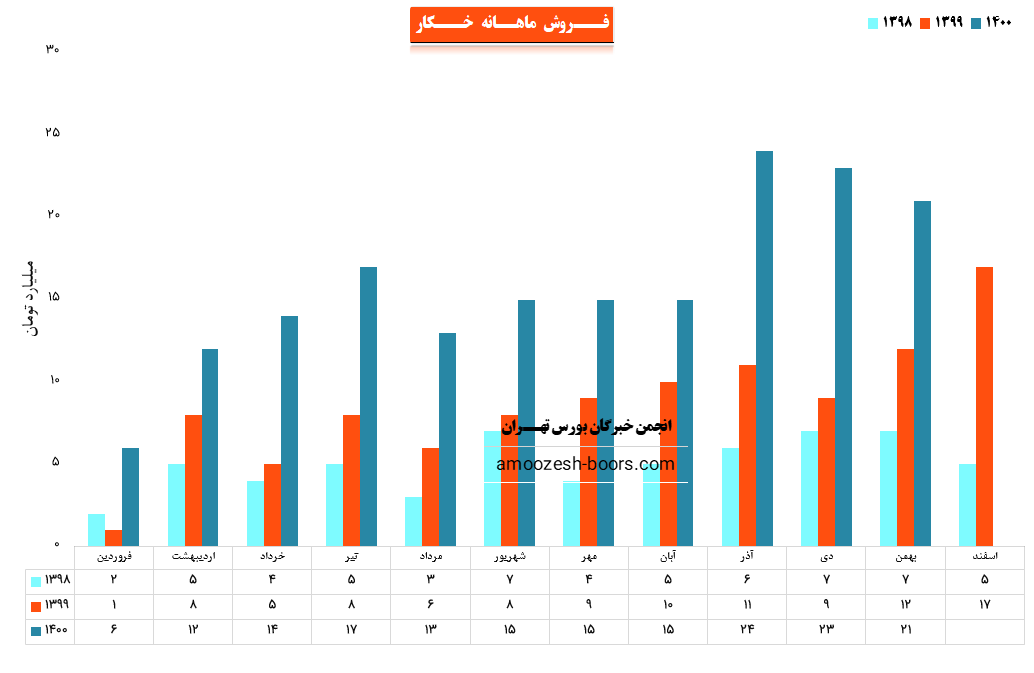 درآمد شرکت در این دوره نسبت به ماه قبل 3% کاهش و نسبت به میانگین ماه های قبل 59% افزایش داشته است. شرکت نسبت به دوره 1 ماهه مشابه سال قبل 149% افزایش درآمد داشته است همچنین خکار در مرحله دوم و اظهار نظر حسابرس جهت افزایش سرمایه سی درصدی ازمحل سود انباشته میباشد .