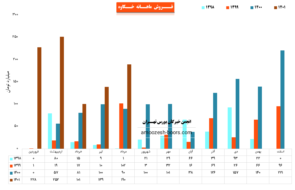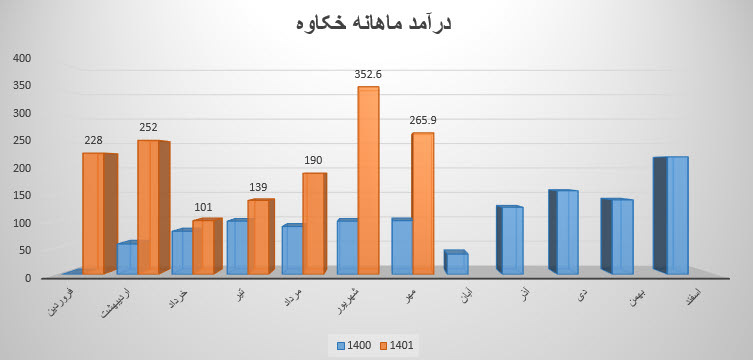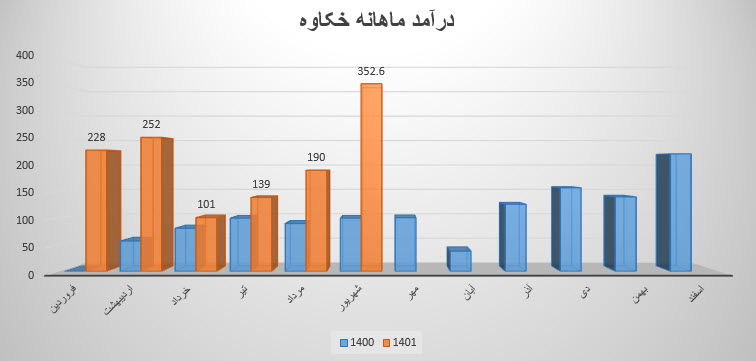 نماد خکاوه نسبت به دوره 1 ماهه مشابه سال قبل 252% افزایش درآمد داشته است.