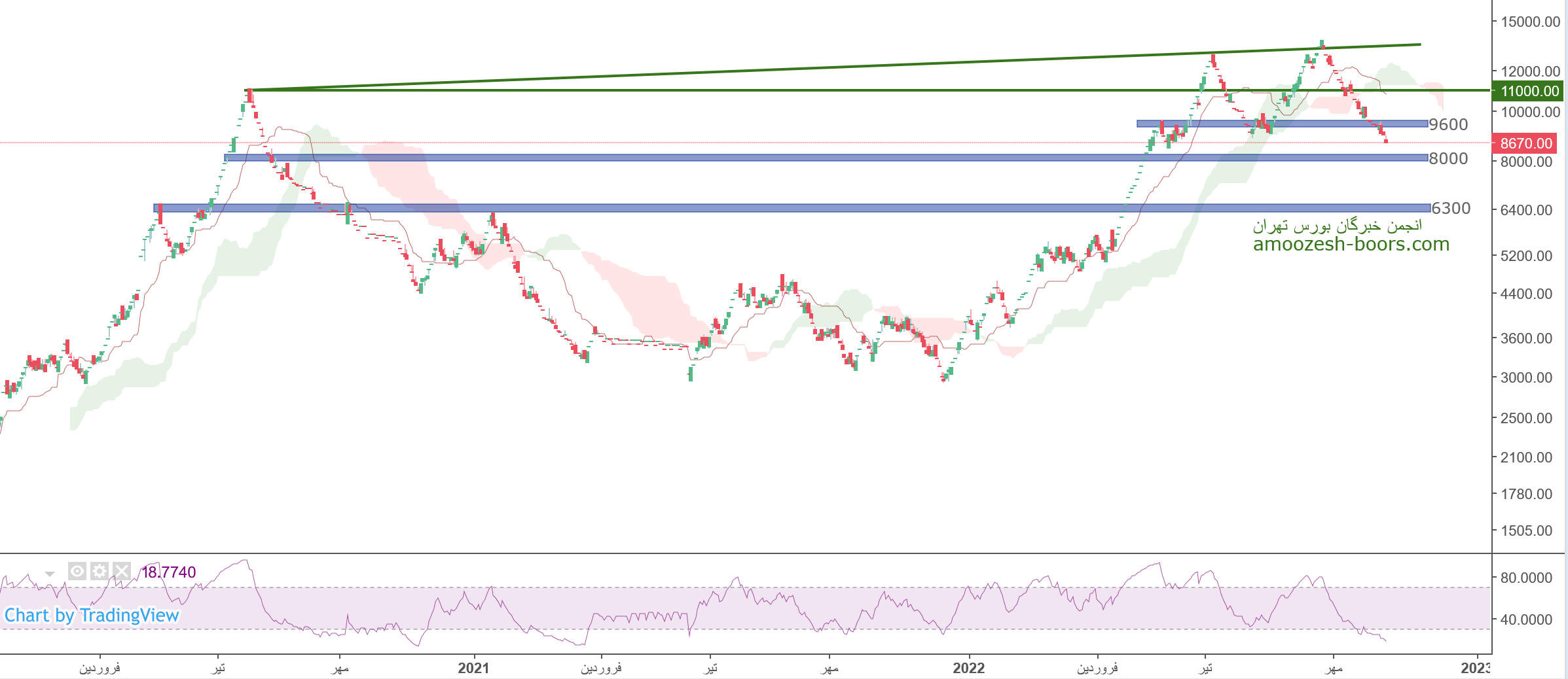 قیمت نماد خکاوه در ادامه اصلاح خود حمایت 8000 ریال را دارا میباشد، در صورت تثبیت قیمت، حرکت سهم تا 9600 ریال دور از ذهن نخواهد بود، همچنین در صورت از دست رفتن این سطح حمایتی، اصلاح سهم تا 6300 ریال محتمل میباشد.