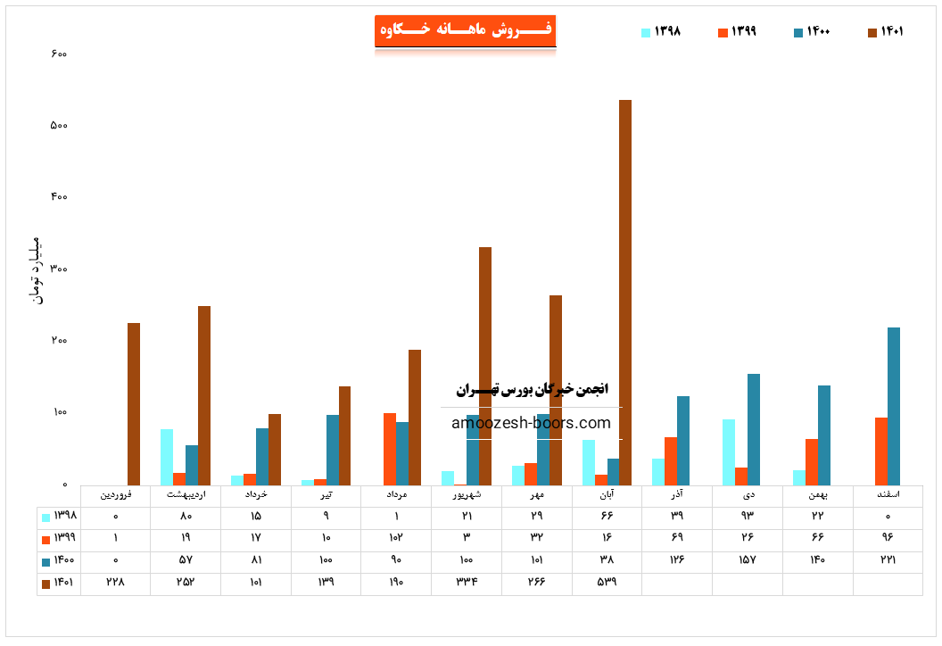 نماد خکاوه در آبان ماه حدود بیش از 60 دستگاه از محصولات خود را به فروش رسانده که این میزان در مقایسه با حجم فروش ماه گذشته خود حدود 49% کاهش پیدا کرده است.