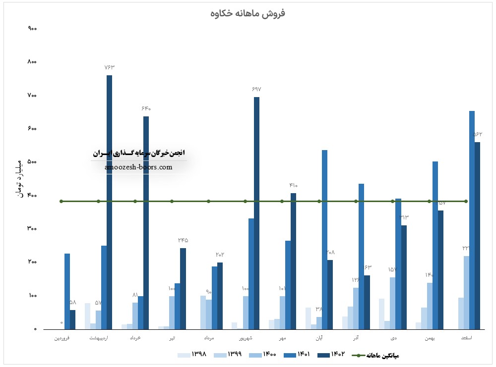نماد خکاوه در اسفند ماه 318 دستگاه از محصولات خود را به فروش رسانده که این میزان در مقایسه با حجم فروش ماه گذشته خود حدود 55% افزایش پیدا کرده است.