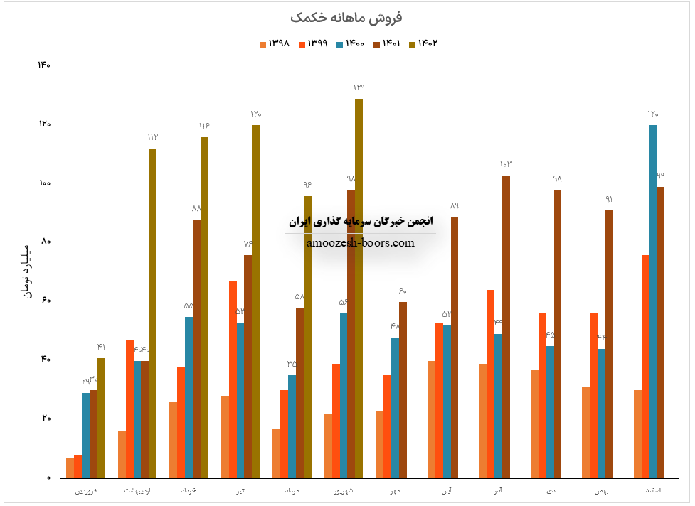 سهم خکمک در شهریور ماه حدود بیش از 1/300/000 عدد از محصولات خود را به فروش رسانده که این میزان در مقایسه با حجم فروش ماه گذشته خود حدود 431% افزایش پیدا کرده است.
