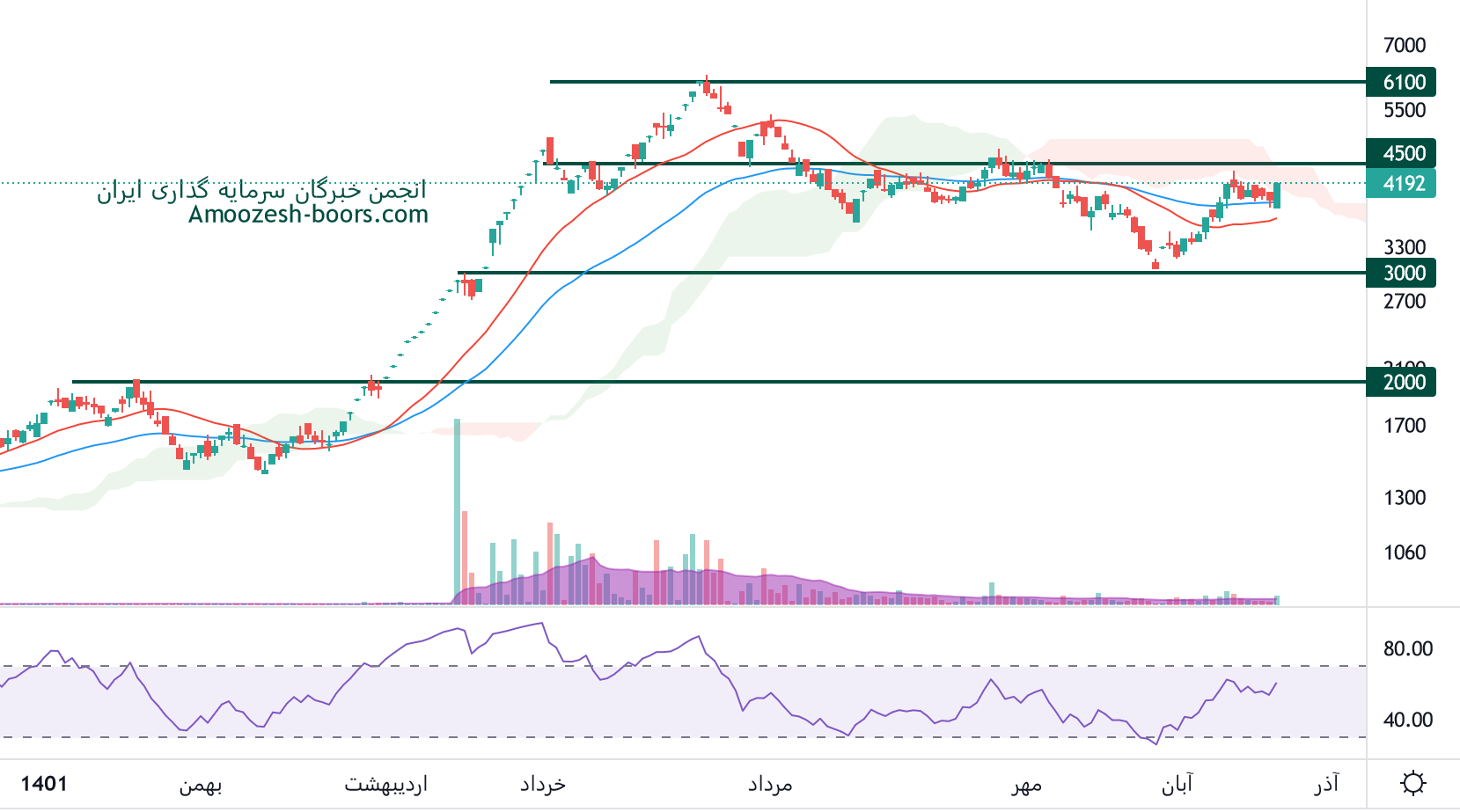 در بررسی نمودار تکنیکال نماد خکمک، قیمت سهم با صعود 40 درصدی به سطح مقاومتی 4500 ریال رسیده، در صورت ادامه دار شدن صعود و عبور قیمت از این سطح مقاومتی، مقاومت بعدی سهم خکمک محدوده 6100 ریال خواهد بود، همچنین در صورت ورود قیمت به فاز اصلاحی، اولین حمایت خکمک محدوده 3000 ریال خواهد بود.