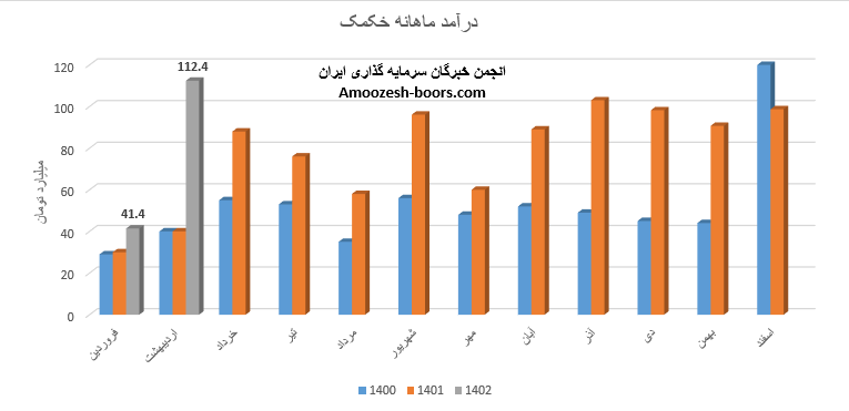عملکرد ماهانه نماد خکمک در اردیبهشت ماه سال 1402 برابر با 112.4 میلیارد تومان بوده است، که نشان میدهد فروش سهم خکمک نسبت به ماه گذشته 171% و نسبت به مدت مشابه 181% رشد داشته است، محصول اصلی خکمک کمک فنر تیپ 62 بوده که در مقایسه با ماه گذشته افزایش نرخ 49 درصدی و افزایش 109 درصدی مقدار فروش را تجربه نموده است، مجموع عملکرد دو ماهه سهم خکمک رشد 120 درصدی نسبت به مدت مشابه داشته و 17% از درامد سال قبل پوشش داده شده است.