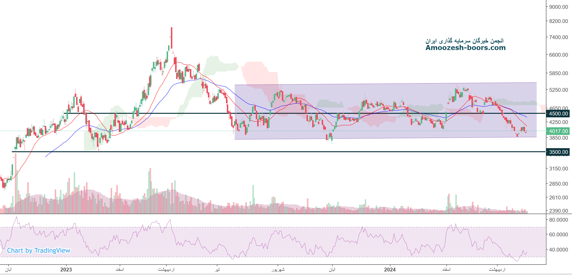 نماد خگستر که متاثر از جو منفی کل بازار کاماکان در فاز اصلاحی به سر میبرد، در حال حاضر به محدوده حمایتی رسیده، باید منتظر طرز واکنش قیمت به این محدوده حمایتی ماند ( حمایت خگستر 3800 ریال میباشد )، همچنین در صورت از دست رفتن این حمایت، حمایت بعدی نماد خگستر 3500 ریال ارزیابی میگردد، در صورت تثبیت قیمت در این محدوده، اولین مقاومت سهم خگستر محدوده 4500 ریال در نظر گرفته خواهد شد.