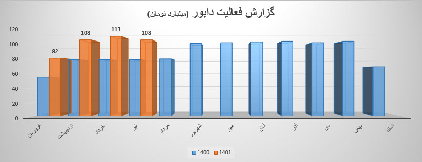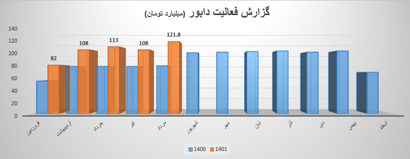 نماد دابور در شهریور ماه 1401 حدود مبلغ 175 میلیارد تومان درامد داشته که این میزان نسبت به ماه گذشته 43% و همچنین نسبت به مدت مشابه سال گذشته 70% رشد درامد پیدا کرده است!