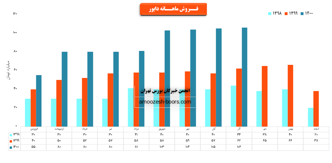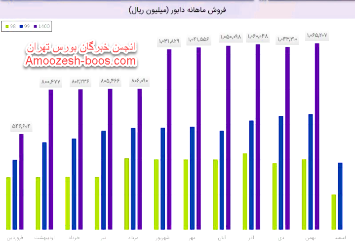 نماد دابور نسبت به دوره 1 ماهه مشابه سال قبل 60% افزایش درآمد داشته است.